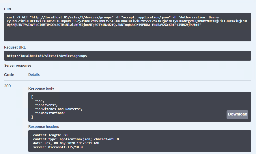 13. Verify the list of device groups that was returned.