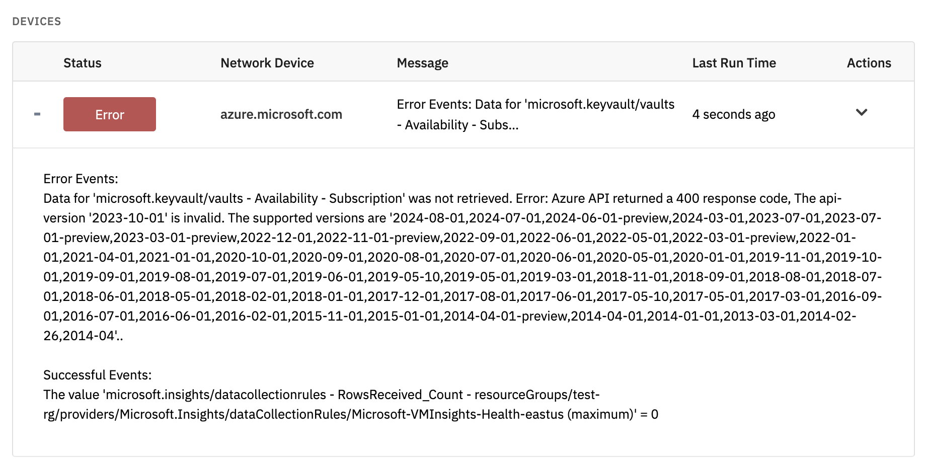 Use this option to alert if the event monitor cannot connect to Microsoft Azure.